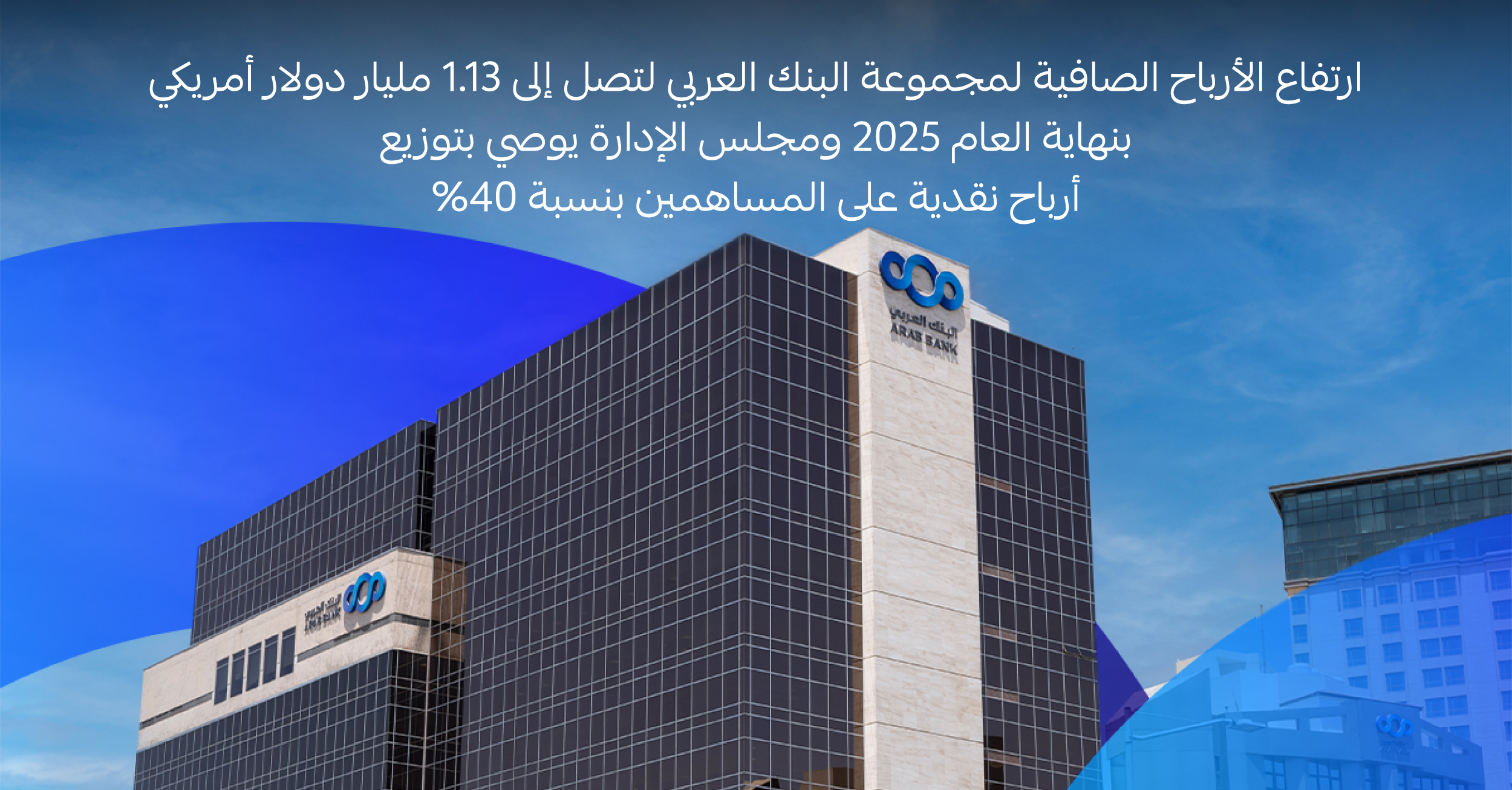 ارتفاع الارباح الصافية لمجموعة البنك العربي لتصل الى 1.13 مليار دولار أمريكي بنهاية العام 2025 ومجلس الإدارة يوصي بتوزيع أرباح نقدية على المساهمين بنسبة 40%